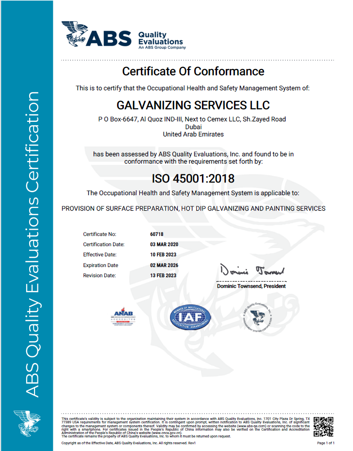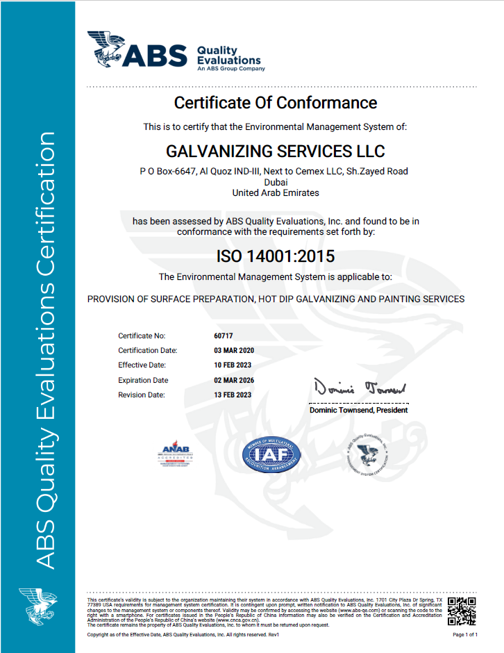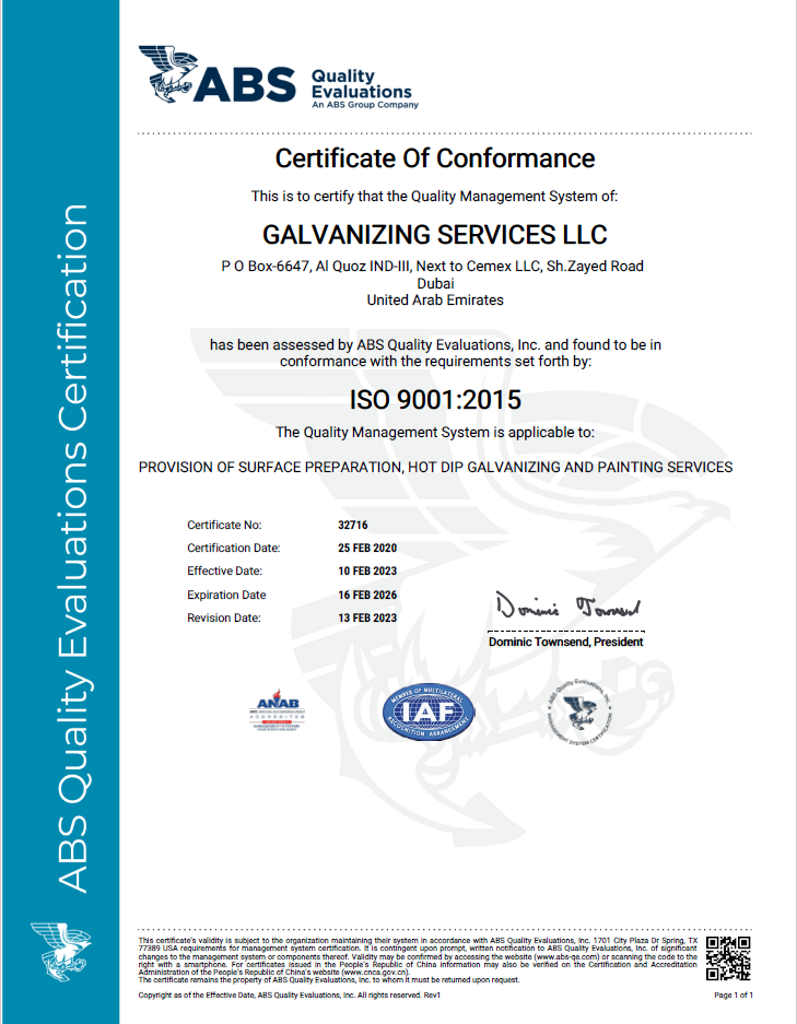 galvanization on fabricated Iron and steel articles (BS EN ISO: 1461:2009, ASTM A 123,